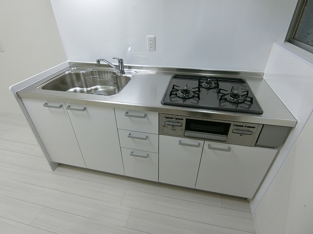 | 設備 | ガス(都市ガス)、インターホン(TVモニター付き)、駐輪場、バイク置き場、日当り良好、通風良好、振分け、フローリング、ベランダ・バルコニー、専用庭、収納スペース、クローゼット、押入れ、下駄箱、バス・トイレ別(別室)、シャワー、脱衣所、給湯、3点給湯、温水洗浄便座、洗面台、洗面所独立、シャンプードレッサー、洗濯機置き場(室内)、コンロ設置済、コンロ口数(3)、コンロ種類(都市ガス)、グリル、システムキッチン | ||