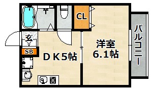 | 間取り詳細 | DK 5畳 、 洋室 6.1畳 |