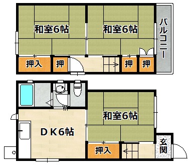 | 間取り詳細 | DK 6畳 、 和室 6畳 、 和室 6畳 、 和室 6畳 |