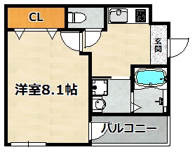 | 1K | 洋室 8.1畳 | 27.41㎡ |