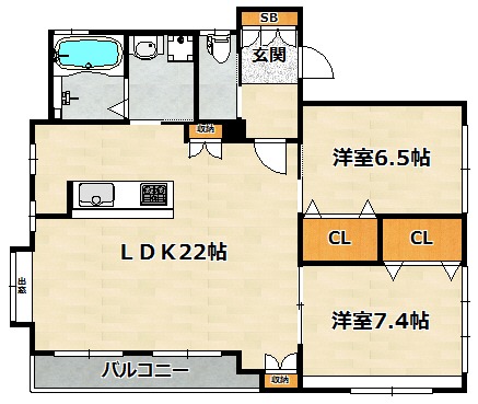 | 間取り詳細 | 洋室 6.5畳 、 洋室 7.4畳 、 LDK 22畳 |