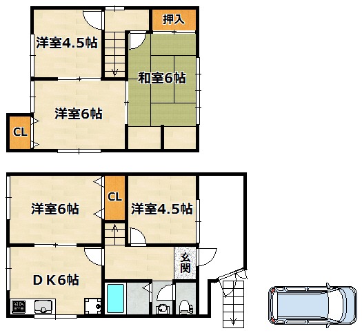 洋室 4.5畳 洋室 4.5畳 洋室 6畳 DK 6畳 和室 6畳 |