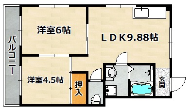 間取り詳細 | LDK 9.88畳 、 洋室 6畳 、 洋室 4.5畳 |