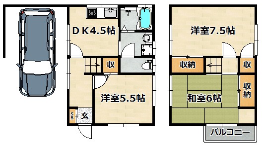 | 間取り詳細 | DK 4.5畳 、 洋室 7.5畳 、 和室 6畳 、 洋室 5.5畳 |