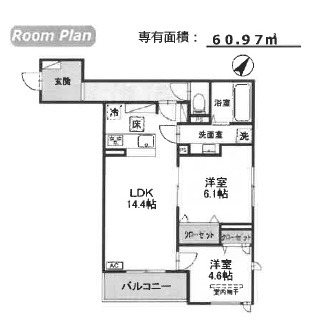 | 間取り詳細 | 洋室 4.6畳 、 洋室 6.1畳 、 LDK 14.4畳 |
