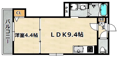| 間取り詳細 | 洋室 4.4畳 、 LDK 9.4畳 |