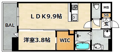 | 間取り詳細 | 洋室 3.8畳 、 LDK 9.9畳 |