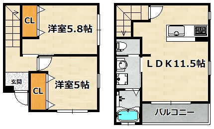 | 間取り詳細 | 洋室 5.8畳 、 洋室 5畳 、 LDK 11.5畳 |
