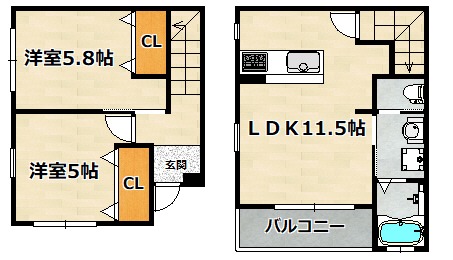 | 間取り詳細 | 洋室 5.8畳 、 洋室 5畳 、 LDK 11.5畳 |