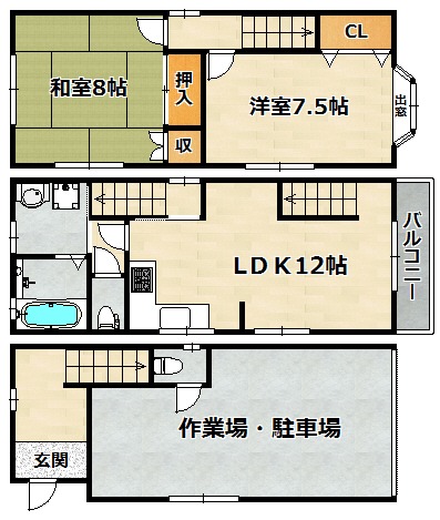 | 間取り詳細 | 洋室 7.5畳 、 和室 8畳 、 LDK 12畳 |