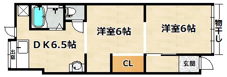 | 間取り詳細 | 洋室 6畳 、 洋室 6畳 、 DK 6.5畳 |