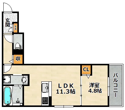 | 間取り詳細 | 洋室 4.8畳 、 LDK 11.3畳 |