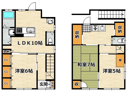 洋室 5畳 和室 7畳 LDK 10畳 |