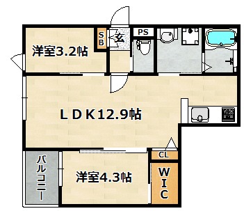 洋室 4.3畳 LDK 12.9畳 |