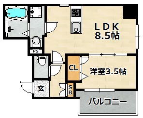 | 間取り詳細 | 洋室 3.5畳 、 LDK 8.5畳 |