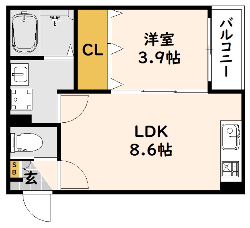 | 間取り詳細 | 洋室 3.9畳 、 LDK 8.6畳 |