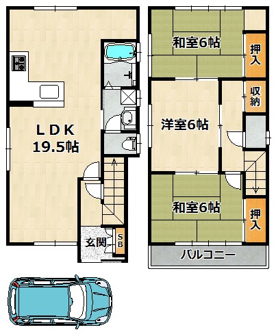 和室 6畳 洋室 6畳 LDK 19.5畳 |
