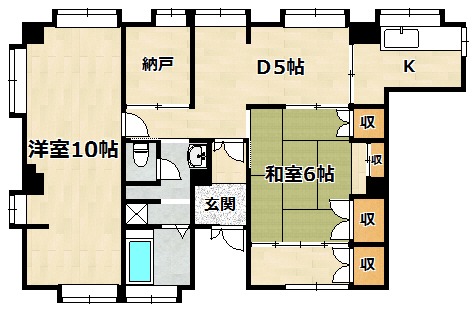 | 部屋の特徴 | ガス(都市ガス)、インターホン(TVモニター付き)、日当り良好、角部屋、通風良好、振分け、フローリング、収納スペース、押入れ、バス・トイレ別(別室)、シャワー、脱衣所、給湯、3点給湯、洗面台、洗面所独立、洗濯機置き場(室内)、コンロ設置可、コンロ種類(都市ガス)、エアコン、エアコン台数(2)、BS、CS、光ファイバー |
